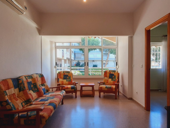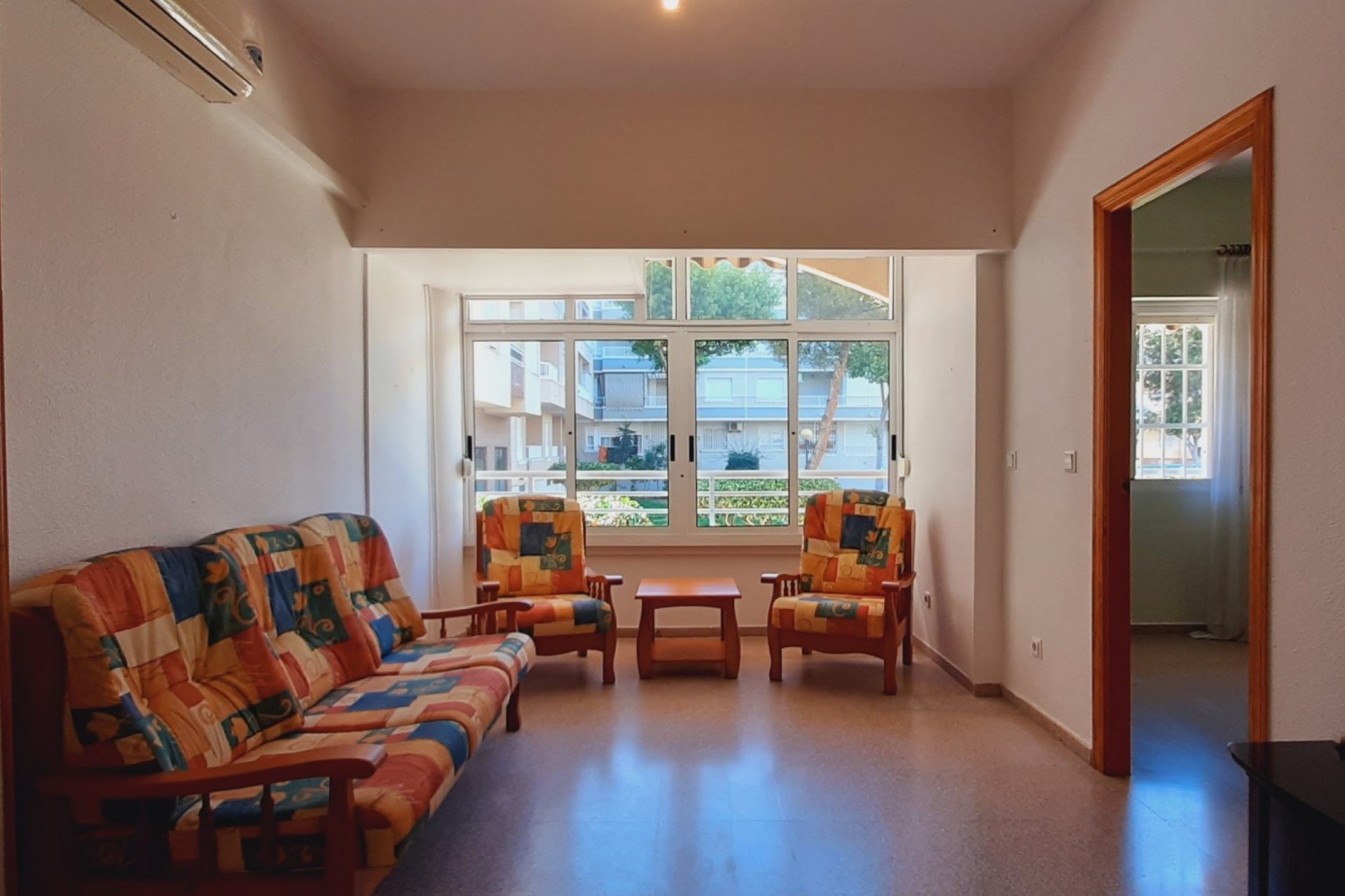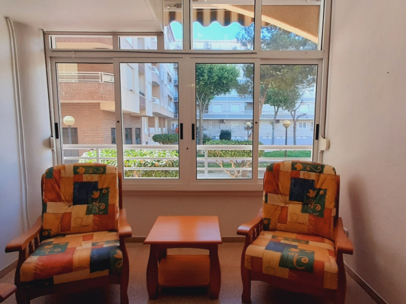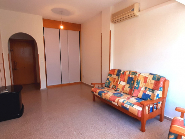 Coqueto apartamento de 1 dormitorio con vistas frontales a Plaza Arbolada y cerca de la playa. La vivienda dispone de 48 m2, 1 dormitorio exterior con armario empotrado doble, baño completo, cocina americana, salón y terraza acristalada unida al salón con vistas panorámicas al parque.