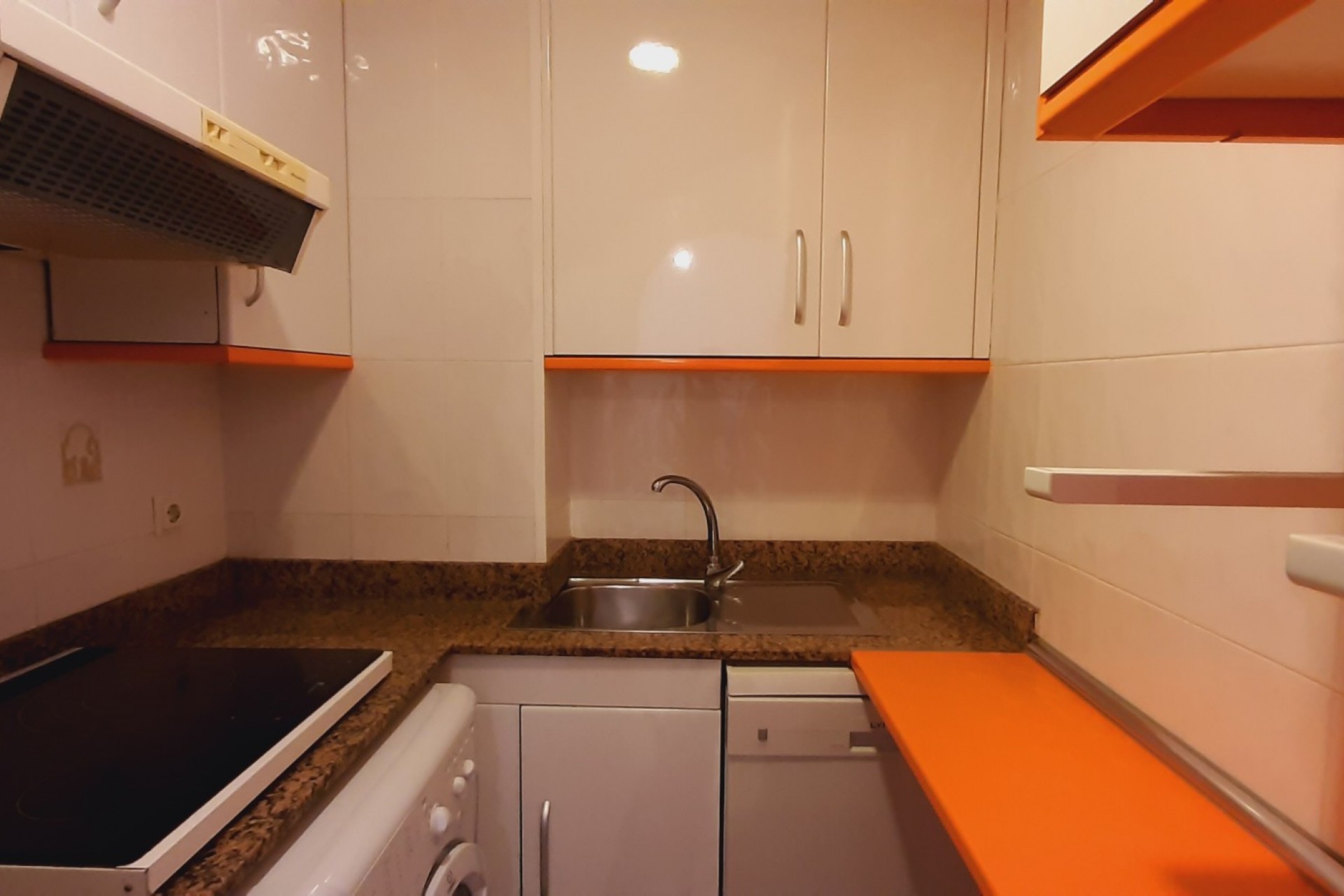 Se encuentra en una planta intermedia, entresuelo, en buen estado, con mobiliario de cocina completo y aire acondicionado. Edificio de buenas calidades de construcción y cómodos accesos de entrada.